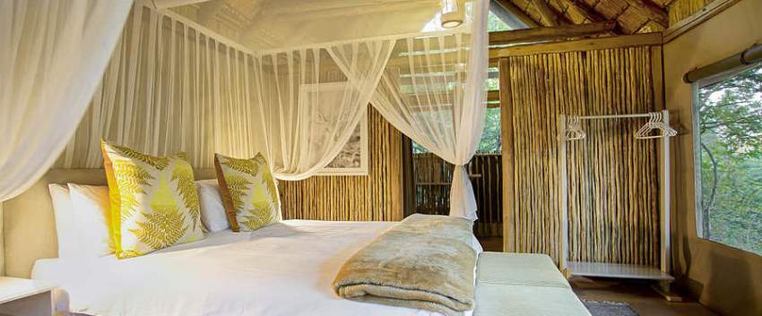 After an exciting game drive, enjoy an outdoors shower under the stars, before savoring the wholesome cuisine cooked in the kitchen, or over an open fire in the boma. Plenty of trees provide shady spots for warthog, nyala and bushbuck to wander about freely – a two-strand electric fence keeps elephant out. Rhino, elephant and buffalo are often seen at the seasonal waterhole, in the dry river bed in front of camp.