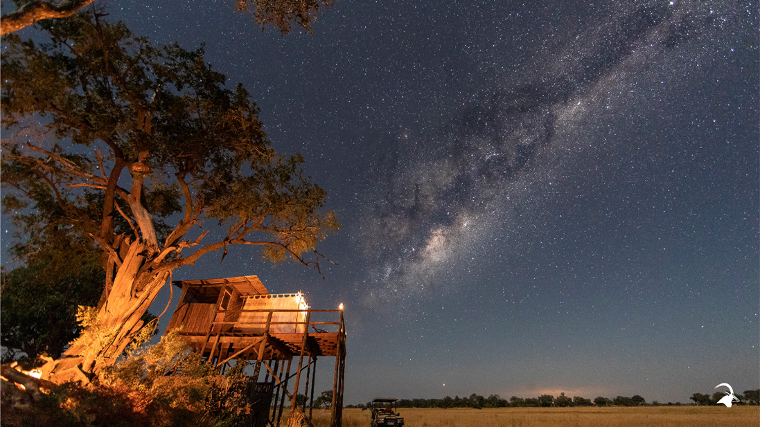 The annual floods transform parts of this concession into a true water paradise, offering guests the best of both worlds. Due to the camps location guests can experience magnificent game sightings during drives as well as the unique experience of exploring the delta’s beautiful waterways by boat or Mokoro at times that the annual Okavango Delta flooding allows for these activities to happen. You may actually, at times of peak flood, enjoy the breath-taking spectacle of the water visibly rising around the camp’s raised teak decks. The Sleep Out Deck offers guests the opportunity to spend the night out under the magnificent African night sky.