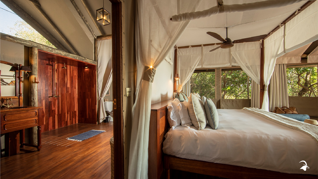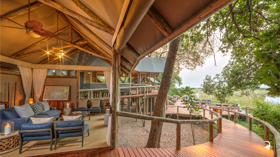 Shinde was rebuilt in 2020, the camps unique main area is built in a “treehouse style” comprising of lounges, dining areas (indoor and outdoor) and a fire deck all with beautiful views over a permanent lagoon and under the shade of ebony and mangosteen trees. The new tents and main area provide a luxury experience with a touch of historical charm. The décor of the new camp can be described as “the best of nature within an authentic safari design – still with the understated, friendly and intimate Ker & Downey Botswana feel”. Elegant, Classic, Opulent ‘Out of Africa’. A ‘worldly’ sophisticated safari experience.
