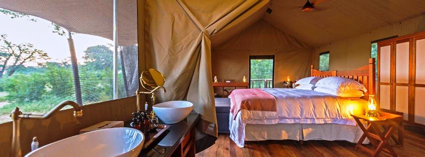 Ten tents are tucked perfectly under the shady arms of the teak trees bordering the open waterhole in front of camp. Each tent has been carefully positioned to ensure the best serenity and privacy so that guests can enjoy the natural beauty of the area. Each room is comfortably appointed and has en suite shower, flush toilet, double vanity, all beautifully designed to retain the authenticity and magical feeling of being on safari. Verney’s Camp has eight double/twin rooms and two family rooms, all of which sit at ground level and are connected by natural pathways.